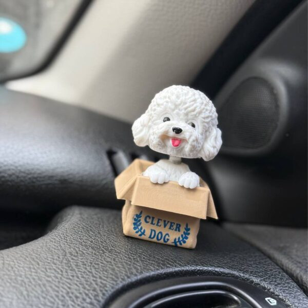 عروسک تزئینی روداشبورد خودرو طرح سگ باکس دار سفید